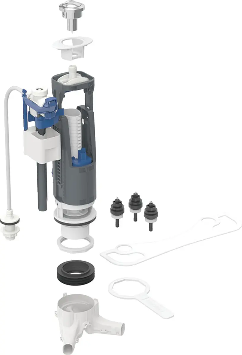 Asennusohjeet saatavilla tarvittaessa. Tämä venttiilisarja on yhteensopiva erityisesti WC-säiliöiden varaosiksi ja tarjoaa optimaalisen veden säästön.